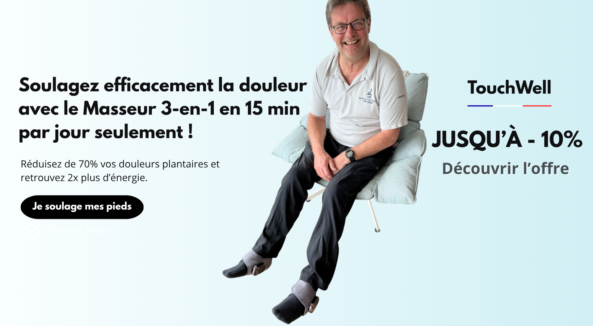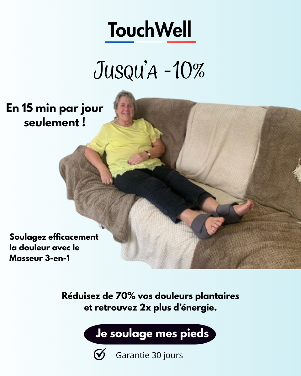 Profitez dâun massage complet grĂące Ă la combinaison de vibrations apaisantes, chaleur relaxante et compression ciblĂ©e. TouchWell amĂ©liore la circulation sanguine, rĂ©duit les douleurs et lâenflure, et vous offre une sensation immĂ©diate de lĂ©gĂšretĂ©. Rechargeable, portable et facile Ă utiliser, il sâadapte Ă toutes les tailles de pieds grĂące Ă sa sangle ajustable.